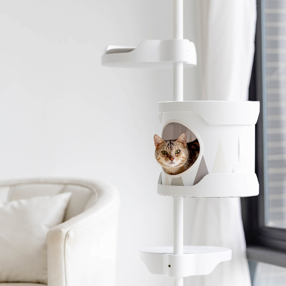 小貓玩心重、怕生的貓需要隱蔽空間,短腿貓和老貓因為關節問題而不易跳高...因此我們設計了有如樹枝展開形式的貓跳台,讓貓咪擁有在高處俯視的安全感,同時滿足小貓到老貓的各種不同需求。