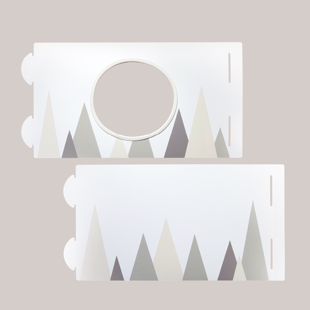 組裝貓屋時,將其捲起扣好後置於跳板上,再以另一片跳板向下扣緊以確保穩固。