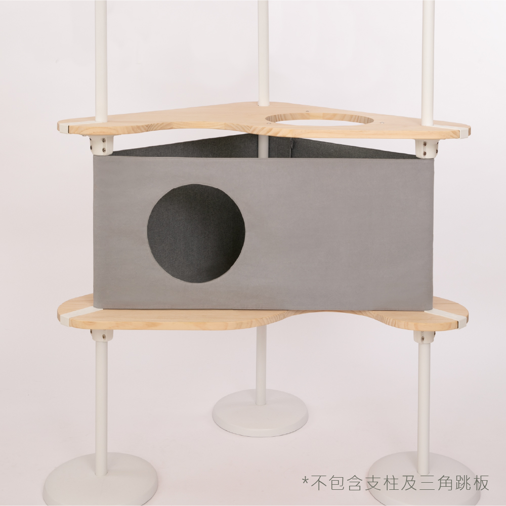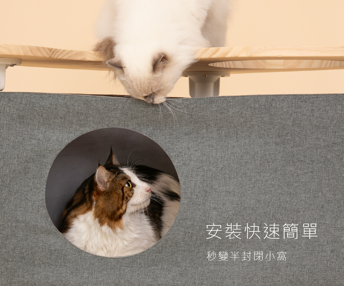 魔鬼氈固定,拉上就定位,快速打造半封閉休憩空間,讓貓咪能在熟悉的跳台上找到藏身與休息的安全感。