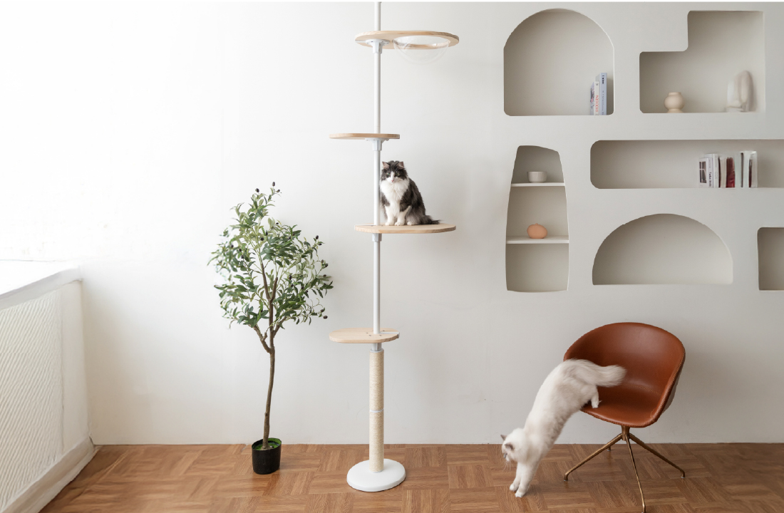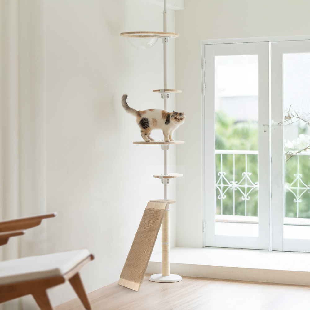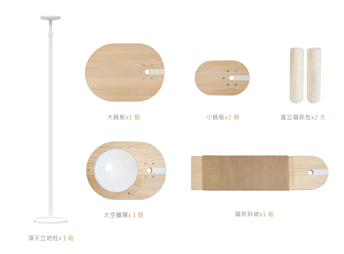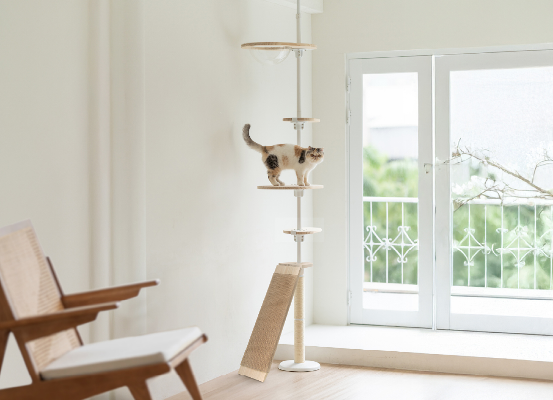 配件高度、角度可隨貓咪成長彈性調整,佔地僅0.5m³,兼顧實用與美感,讓貓咪自在跳躍、放鬆休憩。