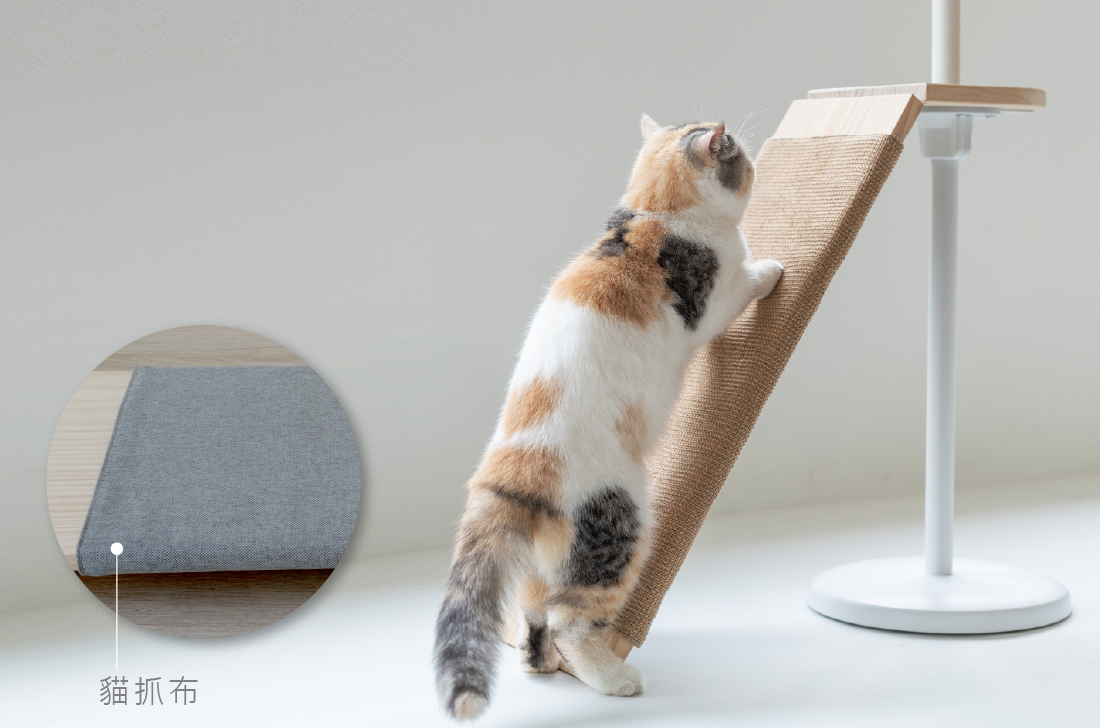 斜坡角度可自由調整,搭配雙面貓抓布,幼貓、老貓都能輕鬆上下,盡情抓抓、躺臥。